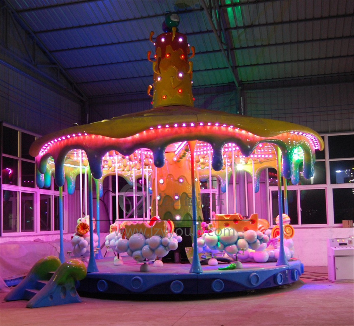 第三、兒童游樂設備在造型上大多采用小朋友喜愛的卡通造型,而且色彩斑斕,易于引起小朋友目光和乘坐好奇心。