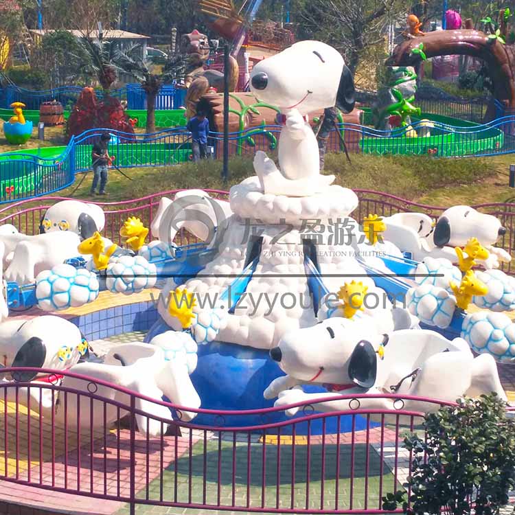 現在的游樂市場中,據客戶反映情況來分析,新型游樂設備在市場行情中能夠受到游客廣泛喜愛。就單拿飛天史努比來講,飛天史努比作為一款新型的自控飛機上下轉動飛行的兒童游樂設備,首先它具有足夠大的體積能夠在游樂場中眾多設備中以高度和體積突出成為坐標。其次飛天史努比并不像其他游樂設備一樣五彩斑斕,飛天史努比機身用天空藍做底色在其底色中添加白云造型進行點綴,飛天史努比的座椅完全是高還原度的史努比卡通形象加上承重臂上鵝黃色呆萌小恐龍,使設備更具生動。近年來空氣指標一直都不太理想,所人們對藍天白云一直都是珍視期盼的,飛天史努比簡單純粹的色調組合可以說從另一層面來捕獵人們的游玩心理。